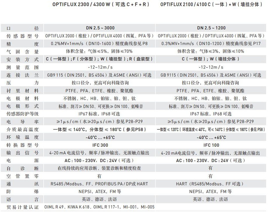 傳感器型號(hào):OPTIFLUX2000(橡膠)OPTIFLUX4000(四氟、PFA)